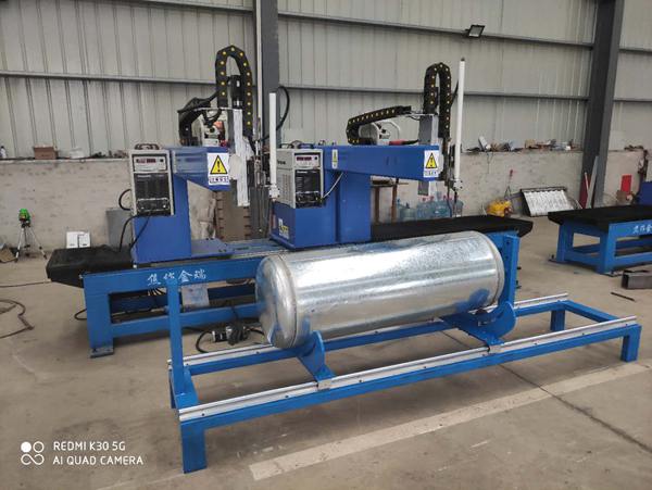 單臺(tái)環(huán)縫雙槍自動(dòng)焊接設(shè)備單班可焊接直徑500mm水箱120件以上。如一人同時(shí)操作兩臺(tái)設(shè)備,效率可達(dá)單班生產(chǎn)200個(gè)以上水箱。